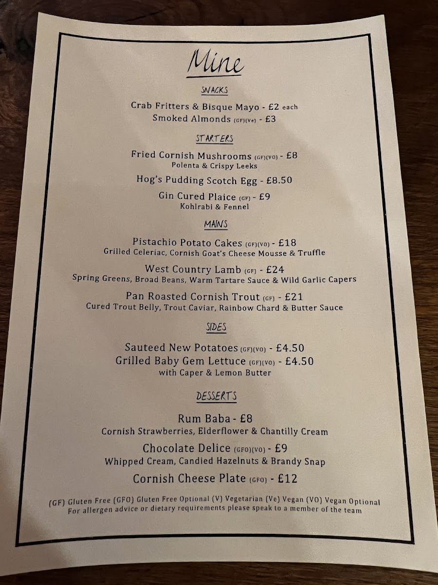 Overall, Restaurant Mine’s menu offers something for everyone. The quality of the food, paired with the warm, inviting atmosphere, makes it a must-visit in Falmouth. If you're in the area, it’s worth stopping by to explore the delightful range of dishes on offer.